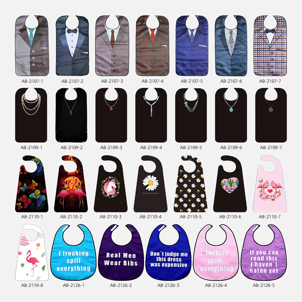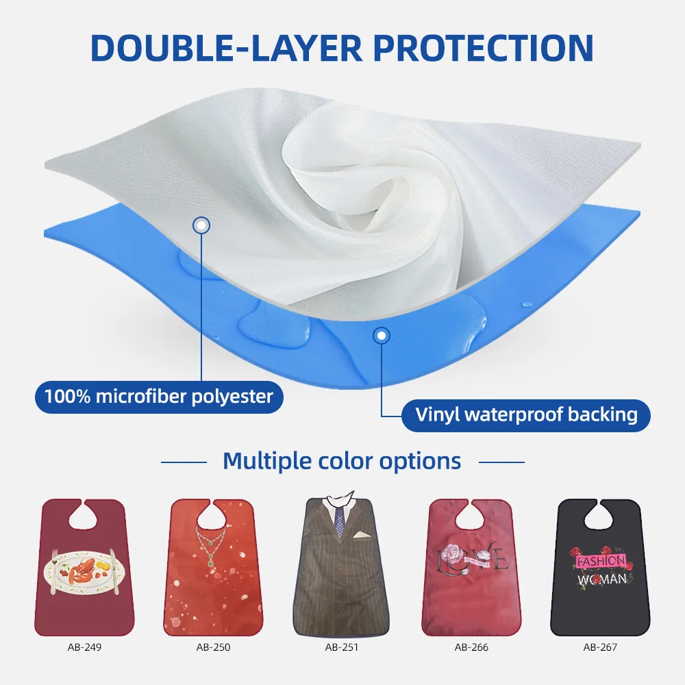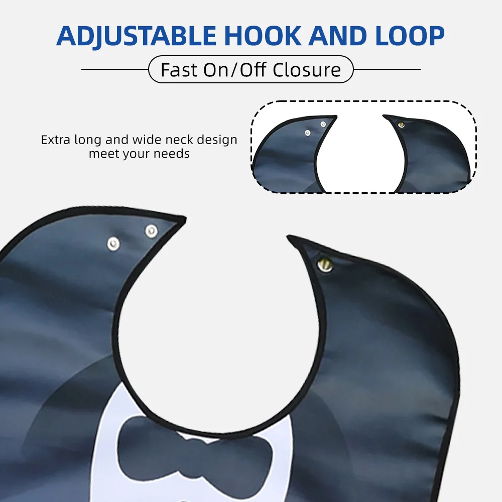 Baberos ajustables grandes para adultos, al por mayor, reutilizables, impermeables, protectores de ropa con recogedor de migas opcional, duraderos y lavables.