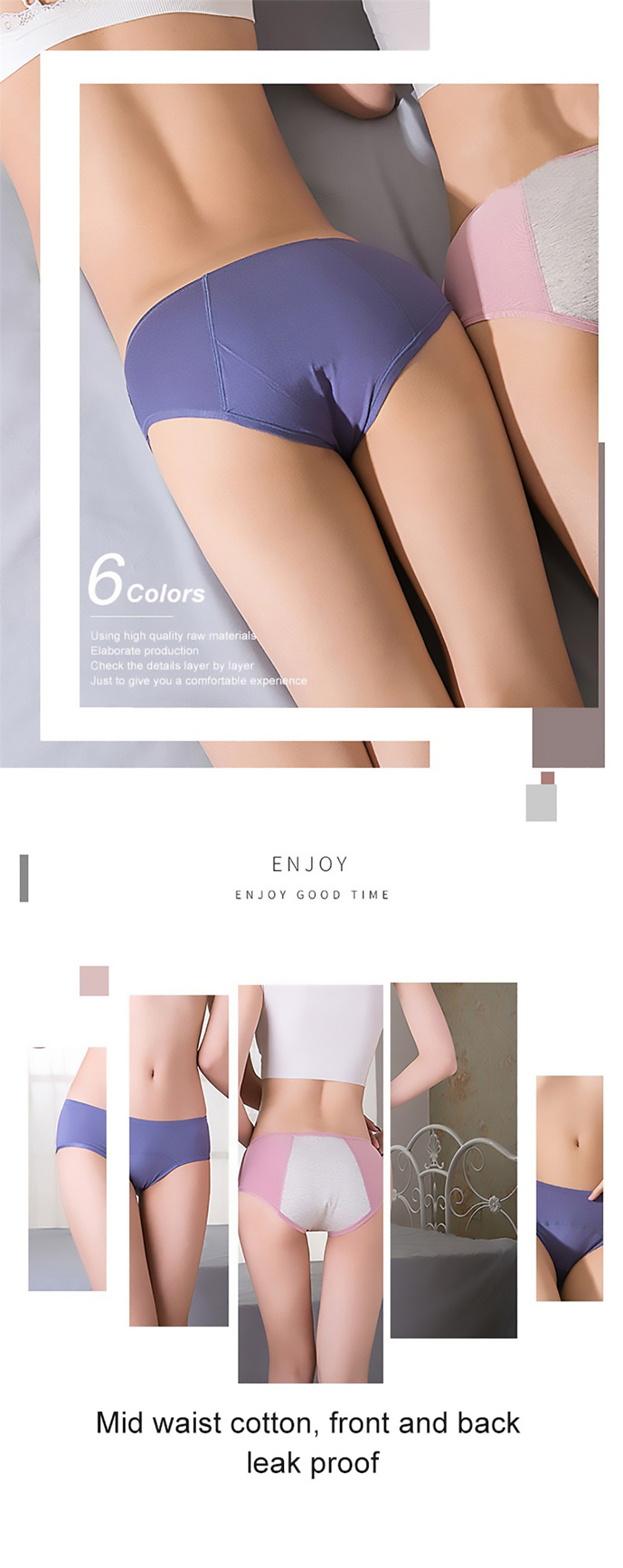 4. NO PARA ABSORBENCIA: El revestimiento a prueba de fugas sirve para evitar que el líquido pase y DEBE usarse junto con toallas sanitarias, tampones, protectores diarios, copas menstruales, toallas sanitarias de maternidad o toallas sanitarias para incontinencia.